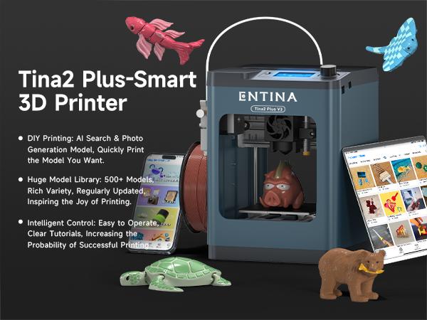 - ASSEMBLED 3D PRINTER: Entina Tina2 Plus Mini 3D printer, Friendly enough to users and beginners, the small 3D printer is ready to use right out of the box and you can start printing quickly without complicated setup. Comes with a complete starter kit, SD card with designed print models, slicing software, detailed tutorials for stress-free use.