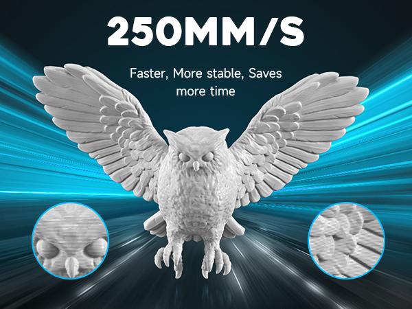 - FASTER SPEED: Newly upgraded high-speed 3D printer, 250mm/s printing speed greatly saves printing time, can quickly complete the print design. 10,000 rpm high-power fan can accelerate the heat dissipation, so that the model printing is more stable and the details are more perfect.