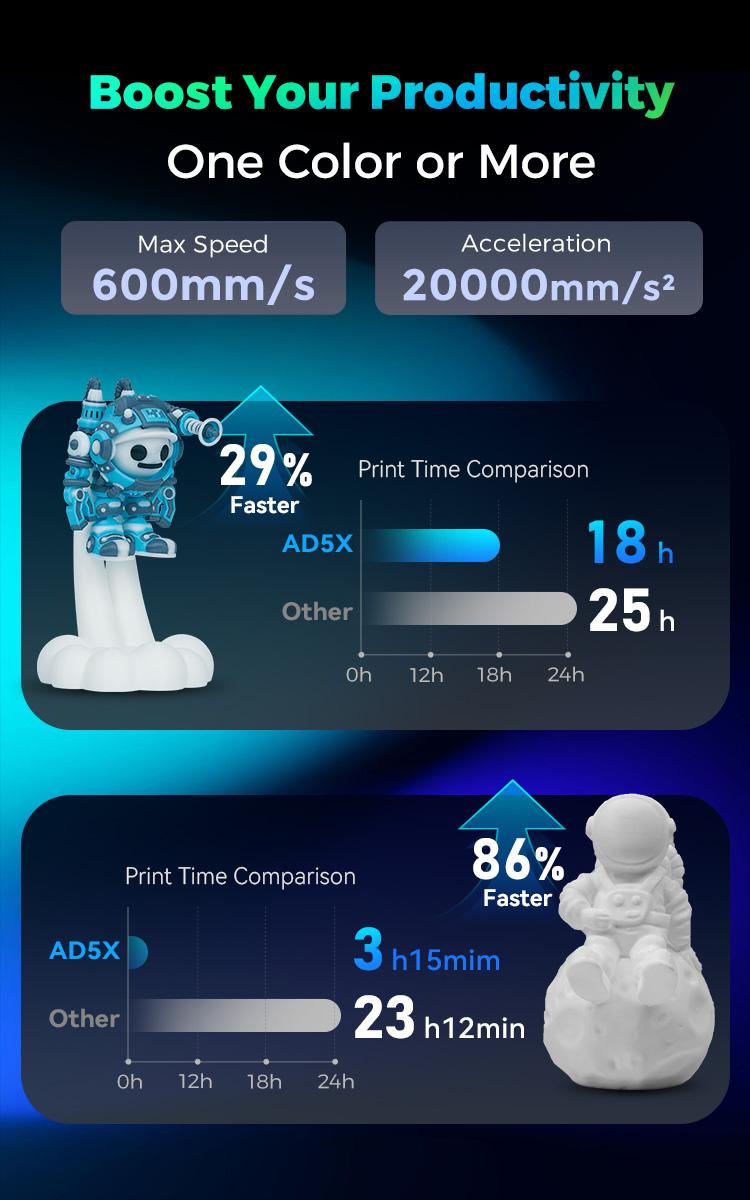 Flashforge AD5X Multi-Color 3D Printer - High Speed 600mm/s with Display Screen - Sleek Black Design