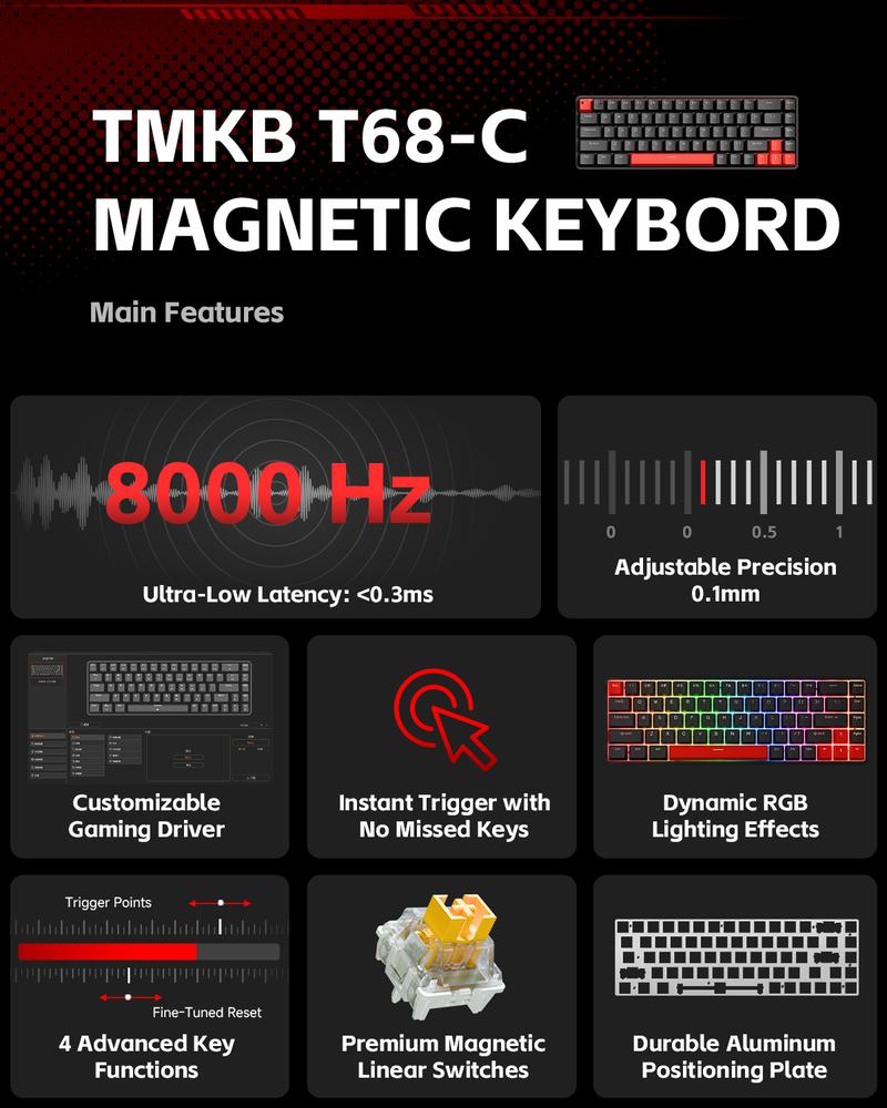 Brand: KEMOVE Product Name: KEMOVE T68-C Magnetic Switch Keyboard, Adjustable RGB Backlight Mechanical Keyboard, Wired Gaming Keyboard for Valorant and Esports Store: KEMOVE Official Store