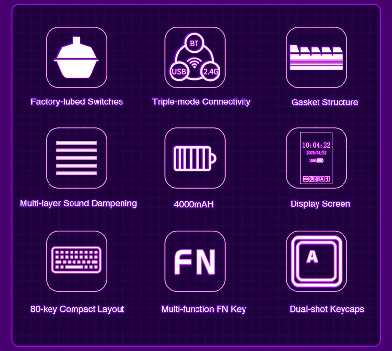 - Customizable Screen & Multi-function Knob: Stylish AULA S75 Pro wireless mechanical keyboard comes with a LCD screen, serving as the interactive interface for real-time updating and customization. Through the screen, you can see all its functions at a glance, such as battery status, date and time, operating system, Gif images, volume and backlight effect. Combined with the multi-function knob, you can quickly customize most of the keyboard's functions.(Note: You need to download the software under windows system and keep in wired mode to set the screen image/GIF, calibrate the date and time.Fn key + press the knob to switch screen control)