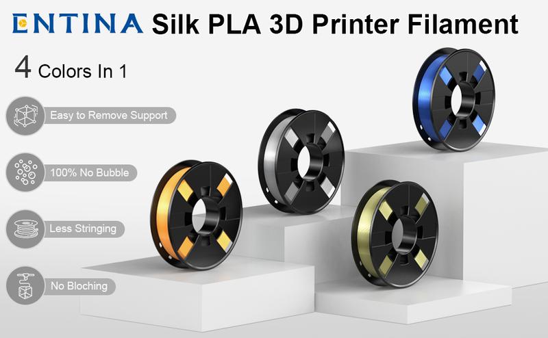 Silk Shiny 3D Printer Filament Bundle - 4 Spools of 1.75mm PLA with Precision Dimensional Accuracy, Perfect for 3D Printing and Father's Day Gifts!