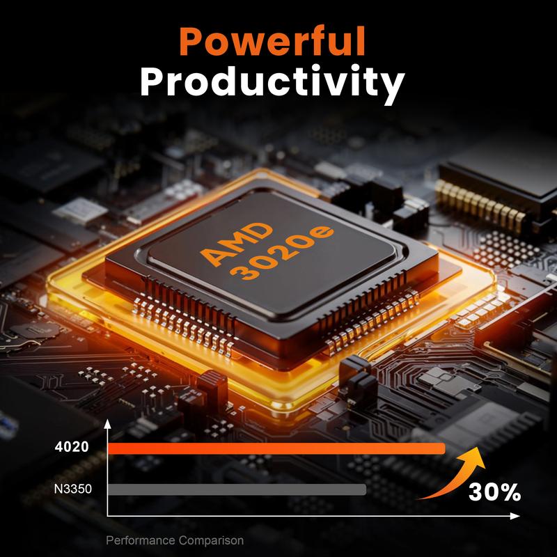 - AMD 3020e Mobile Processor (1.2-2.6 GHz, 2 cores) delivering efficient performance for office applications and multimedia tasks