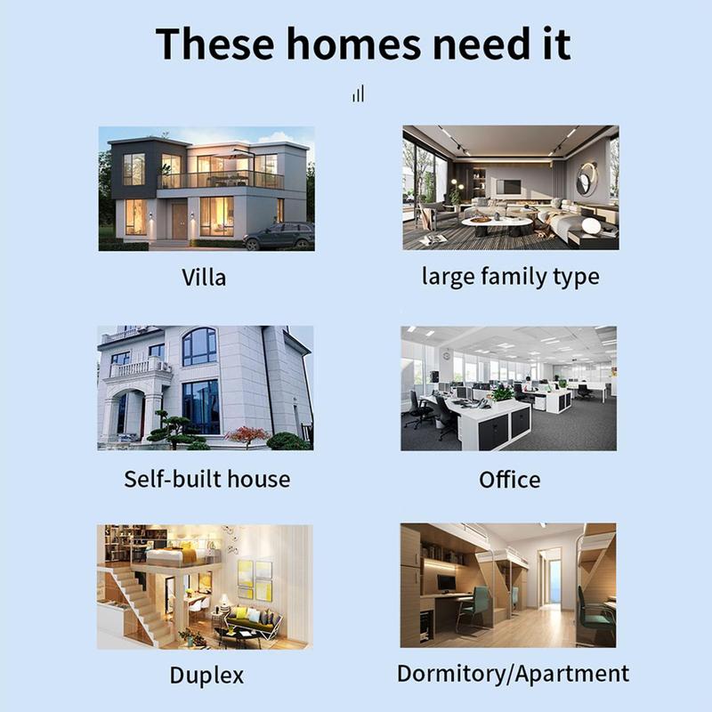 [Expanded Coverage up to 12,000 sq.ft] Upgraded with 6 high-gain antennas, this signal booster penetrates walls and eliminates dead zones, delivering seamless WiFi coverage for large homes, offices, and multi-story spaces.